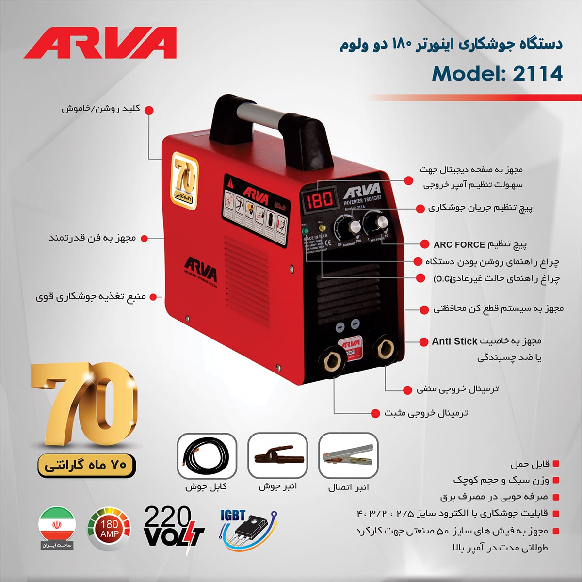 اینورتر جوشکاری 180 آمپر IGBT مدل 2114 آروا