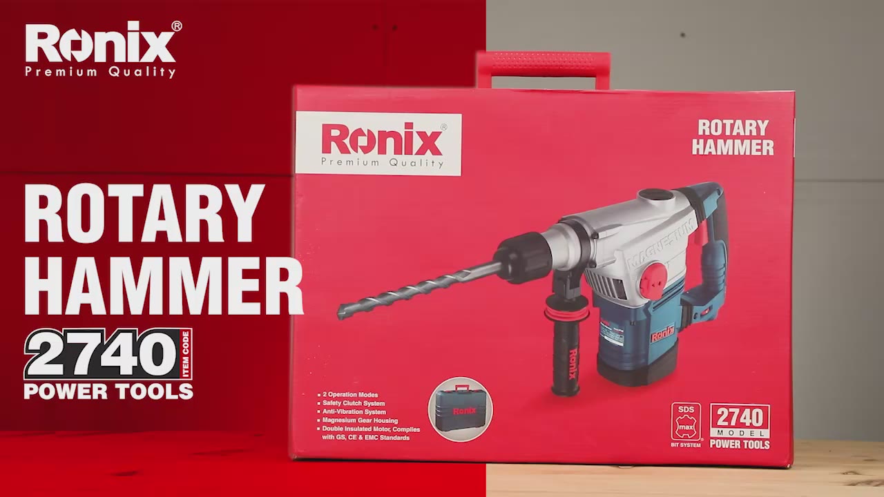 تنها ابزارهای تخصصی می‌توانند بتن و سایر مصالح ساختمانی مانند گرانیت و سنگ‌ها را به روشی حرفه‌ای و با حداکثر کارایی سوراخ کنند. بتن‌کن 2740 رونیکس با موتور 1250 وات، 2800 ضربه در دقیقه را با توان ضربه‌ی 10 ژول ایجاد می‌کند. سیستم ضد لرزش دوگانه که روی دسته‌ی اصلی این دستگاه تعبیه شده است، ارتعاش زیادی را جذب می‌کند تا همزمان با کاهش خستگی کاربر، راندمان و اثربخشی دستگاه نیز بیشتر شود.