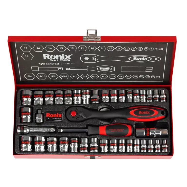 | سایز سوکتها | 18 عدد سوکت 1/4 اینچی ( 4, 5, 6, 7, 8, 9, 10, 11, 12 5.16, 9.32, 1.4, 7.32, 3.16, 1.2, 7.16, 3.8, 11.32 ) میلی متر و 16 عدد سوکت 3/8 اینچی ( 9, 10, 11, 12, 13, 14, 16, 17, 19 , 3.8, 7.16, 1.2, 9.16, 5.8, 11.6, 3.4 ) میلی متر |
