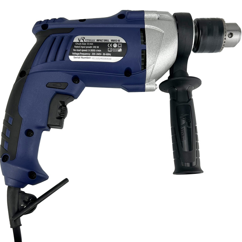 ویوارکس برندی پر آوازه در بین ابزارالات برقی و شارژی دریل چکشی فول آپشن مدل VR8113-ID را معرفی کرده. با داشتن یک موتور قدرتمند 810 واتی قادر است تا به حداکثر سرعت گردش آزادی برابر با 3000 دور بر دقیقه دست پیدا کند.سیم پیچ موتور تماما از مس درجه یک و دیمر تعبیه شده برای این محصول به کاربران این امکان را میدهد تا با توجه به نیاز خود سرعت این دریل را تنظیم نمایند. همچنین کلید تغییر جهت چرخش چپگرد-راستگرد تعبیه شده برای این محصول، این دریل را به ابزاری چند منظوره (استفاده برای پیچ بستن) تبدیل مینماید. در هر زمان که کاربران نیاز به استفاده از این دریل برای تخریب بتن و یا حفاری در آن را داشته باشند، میتوانند براحتی(توسط کلید حالت چکشی) حالت کارکرد دریل را با یک کلید تغییر دهند. در طراحی و ساخت بدنه دستگاه با بهره گیری از متریال اولیه با کیفیت و بهره گیری از ارگونومی بالا ، کاربران قادر هستند تا بدون هیچگونه احساس خستگی، طی ساعات طولانی به کار بپردازند.