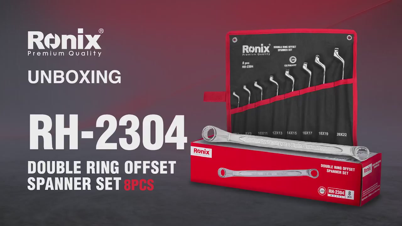 حلقههای دوسر آچار رینگی، سایزهای متفاوتی دارند و برای پیچاندن سایزهای مختلف پیچ مورد استفاده قرار میگیرند. آچار سری 8 عددی دو سر رینگ کیفی رونیکس مدل RH-2304، با فناوری فورجینگ ساخته شده و استحکام بالایی دارد.