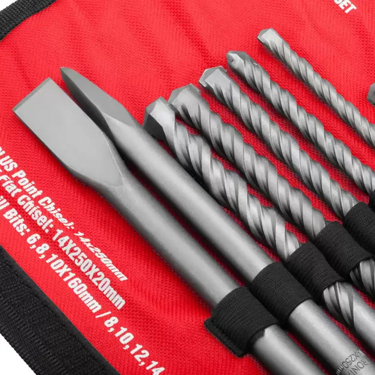 | سایز | “مته چهار شیار (6,8,10X160mm 8,10,12,14,16X210mm) / قلم نوک تیز( 14x250mm) / قلم سر تخت ( 14X250X20mm)” |