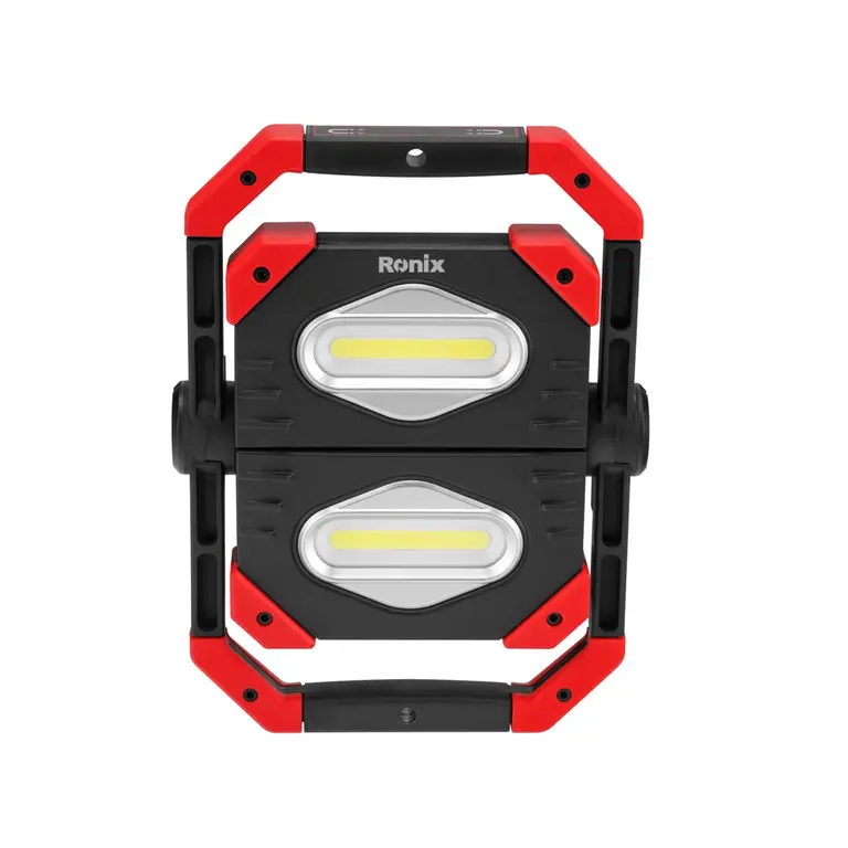 با نورافکن کتابی شارژی رونیکس مدل RH-4277، میتوانید همه جا را مثل روز روشن کنید! این ابزار روشنایی حرفهای، دارای دو عدد الایدی COB 10 وات (مجموعاً توان 20 وات) با شار روشنایی حداکثر 2000 لومن است. منبع تغذیه این محصول، یک باتری 3.7 ولتی 5000 میلیآمپرساعتی لیتیوم پلیمر است که در حالت پرنور، 3.5 ساعت بیوقفه کار میکند.
