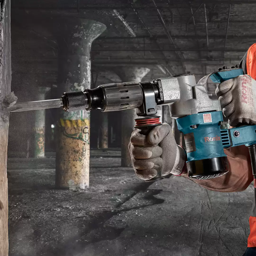 انتخاب چکش تخریب با قدرت مناسب در کنار مانورپذیری بالا، از اهمیت زیادی برخوردار است و چکش تخریب 6 کیلویی 2806 رونیکس با دقت و تمرکز بر همین موضوع طراحی و تولید شده است. کافی است کلید ضد غبار این دستگاه را فشار دهید تا موتور 950 وات آن با انتقال قدرت به بخش شاتون و پیستون، توان ضربه 10 ژول را با 2900 ضربه بر دقیقه به سیستم ابزارگیر ششگوش HEX انتقال دهد و مصالح مختلف را تخریب کند.